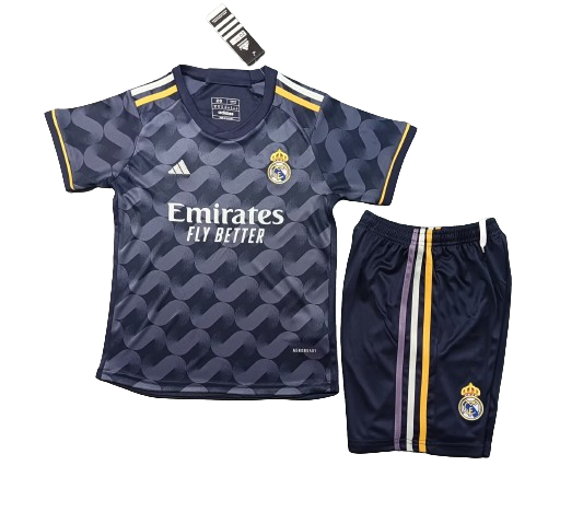 "Elevate your game with the Real Madrid 23/24 Youth Away Kit. Immerse yourself in the sleek and stylish design, featuring a bold color palette that makes a statement on and off the field. The kit combines modern flair with the rich heritage of Real Madrid, creating a striking look for young football fans. Engineered for comfort and performance, this kit ensures you're ready to play with confidence. Join the passion and excitement of Los Blancos with the Real Madrid 23/24 Youth Away Kit – a symbol of youthful spirit and football excellence."