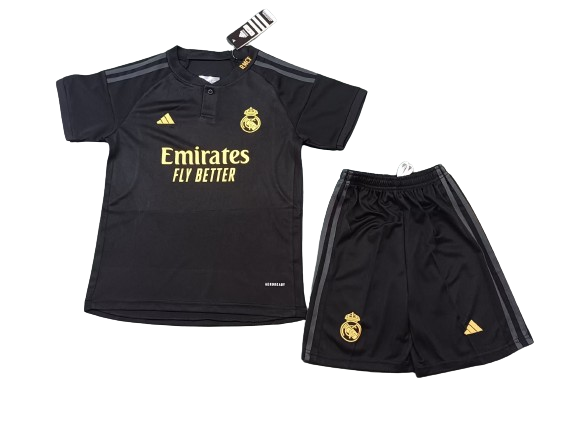 "Elevate your style with the Real Madrid 23/24 Youth Third Kit. Immerse yourself in the energy of the game with this striking kit that combines innovation and tradition. The dynamic design and vibrant colors make a bold statement, reflecting the passion and excellence of Real Madrid. Crafted for comfort and performance, this kit is perfect for young football enthusiasts who want to stand out both on and off the pitch. Join the legacy of champions and embrace the spirit of Real Madrid with the 23/24 Youth Third Kit."